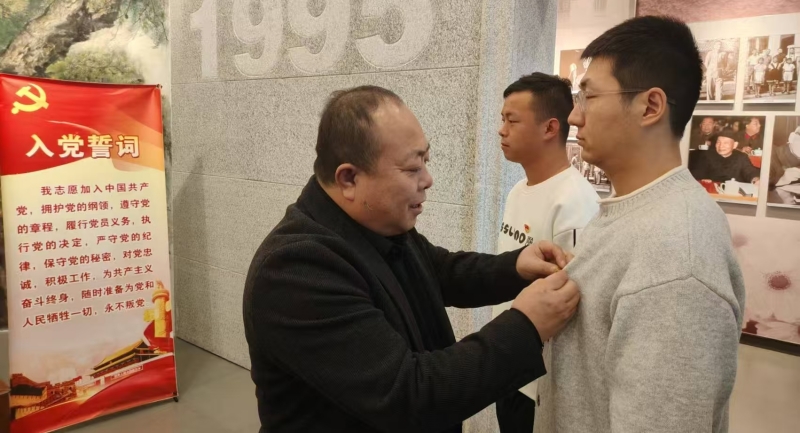 活動(dòng)現(xiàn)場(chǎng),支部書記擔(dān)任領(lǐng)誓人,帶領(lǐng)全體黨員和預(yù)備黨員逐字逐句重溫入黨誓詞。黨員們整齊列隊(duì)面向黨旗,右拳高擎、齊聲宣誓:“我志愿加入中國(guó)共產(chǎn)黨,擁護(hù)黨的綱領(lǐng)......隨時(shí)準(zhǔn)備為黨和人民犧牲一切,永不叛黨?!鼻f嚴(yán)的誓詞在紀(jì)念館內(nèi)回蕩,既是對(duì)入黨初心的回望,也彰顯著對(duì)黨的忠誠(chéng)承諾。宣誓結(jié)束后,支部書記為兩名預(yù)備黨員佩戴黨徽,并叮囑他們要以老黨員為榜樣,牢記對(duì)黨的承諾,不辜負(fù)黨和人民的期望。兩名預(yù)備黨員也現(xiàn)場(chǎng)表達(dá)了加入黨組織的堅(jiān)定決心,表示將嚴(yán)格遵守黨的章程,為黨和人民的事業(yè)不懈奮斗。