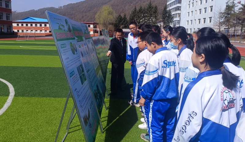 “大家看,這個就是松材線蟲,被它感染的松樹,針葉會呈黃褐色或紅褐色,整株樹木都會干枯死亡,被稱為松樹的癌癥。”在第三中學操場上,工作人員用通俗易懂的語言向宣傳展板前的學生介紹了松材線蟲、銀杏大蠶蛾、落葉松毛蟲等林業(yè)有害生物的形態(tài)特征、生物學特性、防治措施等知識,讓學生們充分了解林業(yè)有害生物防控知識,從小養(yǎng)成“防控生物災害,維護生態(tài)安全”意識。